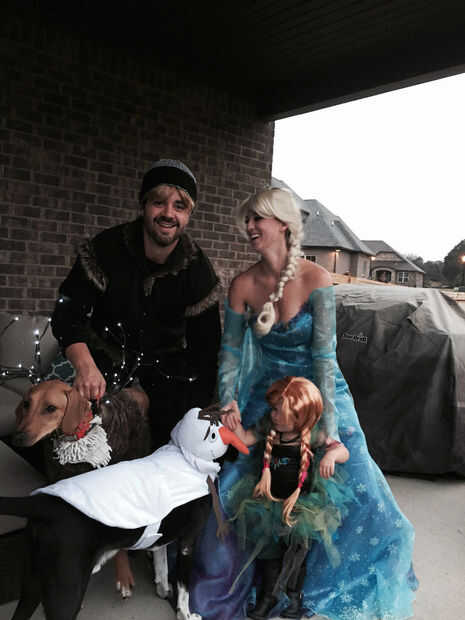 Nuestros dos años de edad ha sido obsesionado con la película y los personajes de congelado por un año (qué chica de niño pequeño no es). Mamá tiene un poco hueso creativo y un poco de tiempo extra mientras nos adentramos en un hogar temporal hasta que la nuestra es listo (sí bien!!) pero ella no podía ayudar a crear este momento mágico. Al final cuando ella se dio cuenta de lo que estaba sucediendo, la mirada en sus ojos, "como OMG... I AM ANA!, "completamente hecho el esfuerzo vale la pena. Mamá fue Elsa, daddy Kristoff y los perros incluso tenían trajes (Sven y Olaf). La foto que imaginaba no sucede absolutamente la manera que quería. Alguien dijo si ustedes chicos sacar una sola foto que será un milagro. Por suerte puedo añadir más de una foto para cada apoyo que se suponía que en la foto.