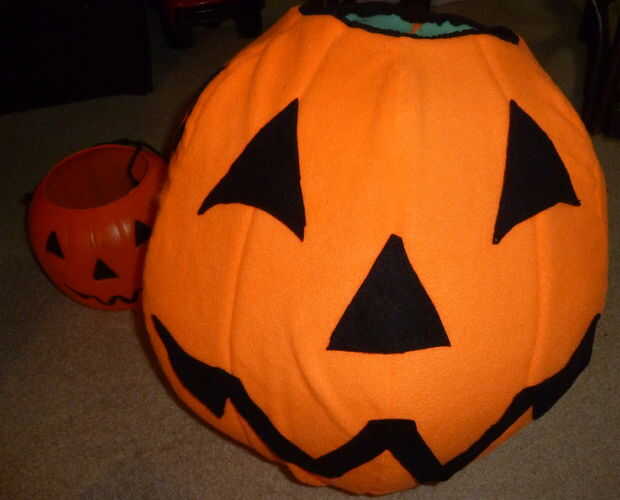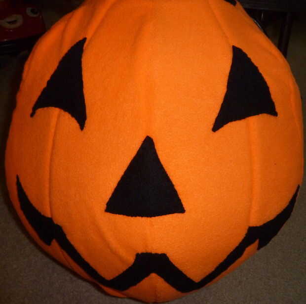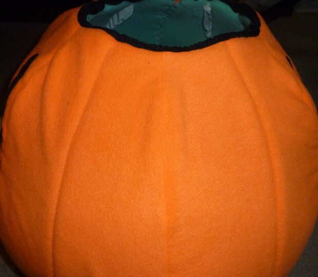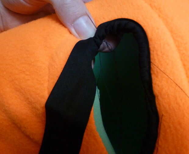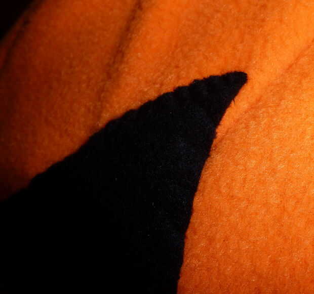 La cara se acaba de hacer de retazos de polar negro, cortado para que coincida con la calabaza de la referencia. Les cosí sobre el uso de un Sobrecosa.