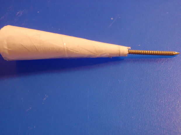 Estos dardos consisten en un cono de papel con un clavo que sobresale fuera del final. Clavos pequeños funcionan mejor. No, repetir no, utilizarlos contra personas, y estos tienen la mejor precisión y distancia de cualquier dardo que hemos pensado hasta ahora. Use cinta para fijar el clavo.