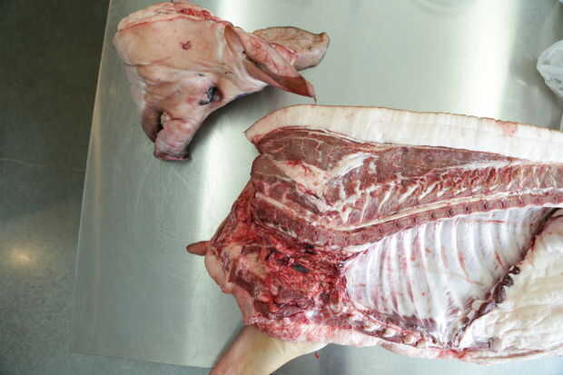 Menudo que cabeza de cerdo llega ya separados. Sin embargo, si no, cortar como cerca como posible al hueso de la cabeza, dividen la articulación de las vértebras y cortó la cabeza.