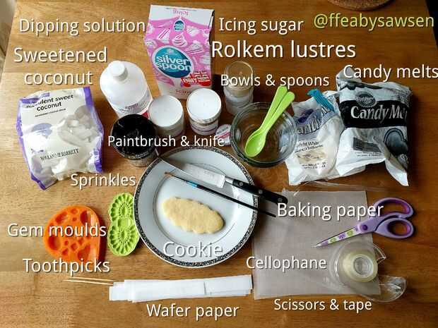 Una cookie de su elección - al horno unas galletas de mantequilla y utilizar uno de esos, pero hará cualquier cosa de tipo roll-out sugar cookie. Si usted quiere saber mi receta yo voy añadiendo un video de ella a YouTube pronto (* editar - video ahora hasta aquí )