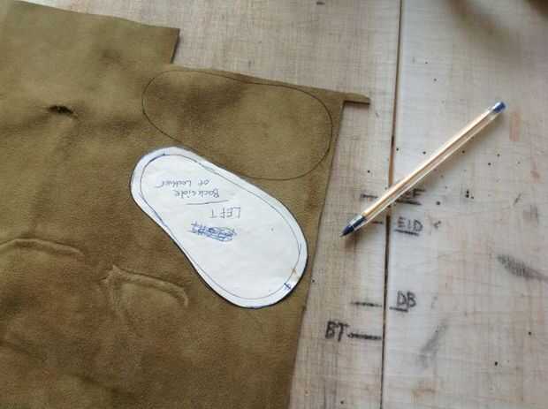 Con su marca los patrones en la parte posterior de la gamuza (lado de la piel) dos de cada pieza para hacer imágenes de espejo.