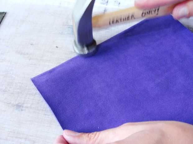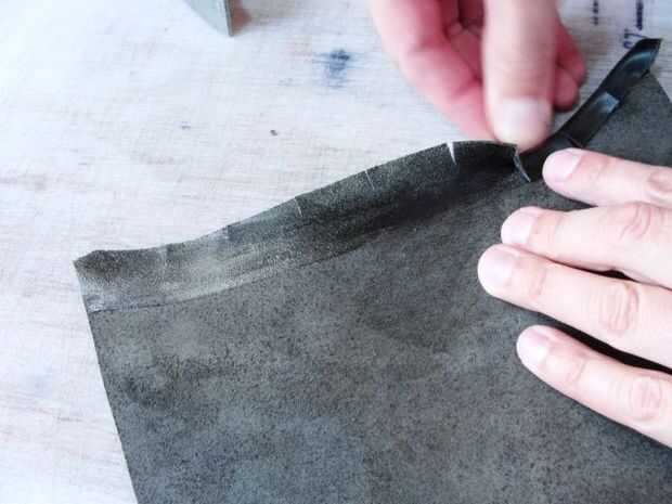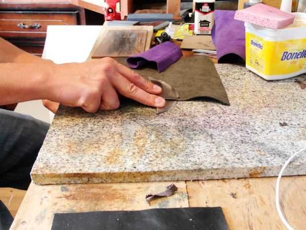 (Opcional) Skive o reducir el espesor en el lado de grano o la parte trasera de cuero.  Sólo es necesario si el cuero es grueso a doblar muy bien.