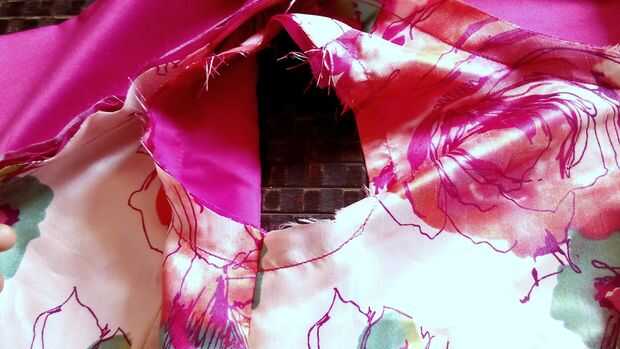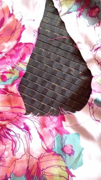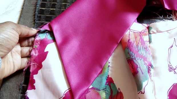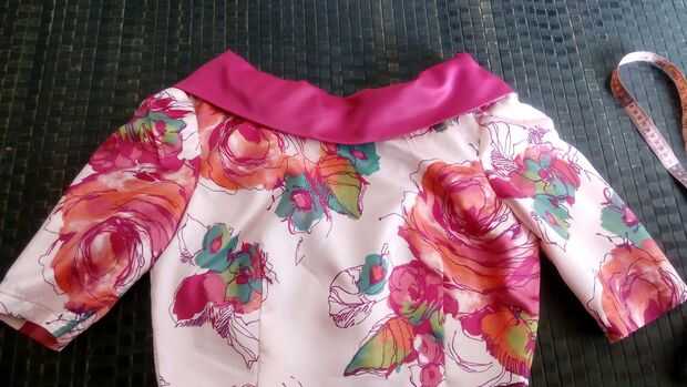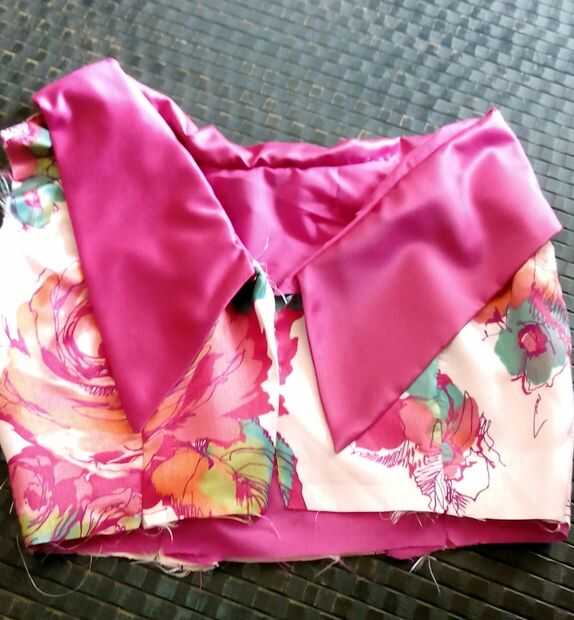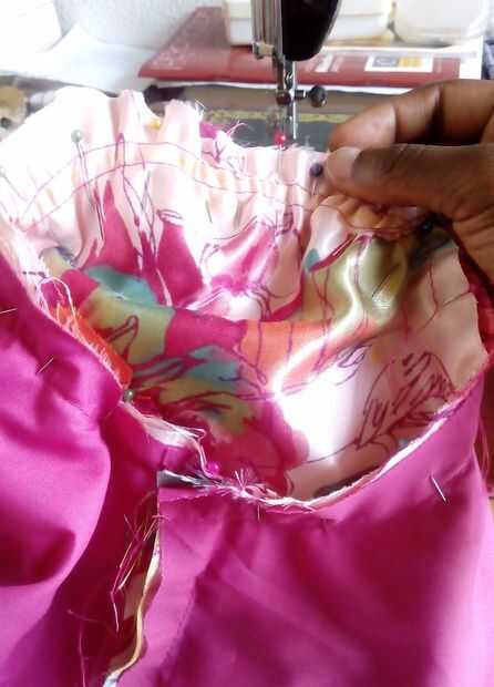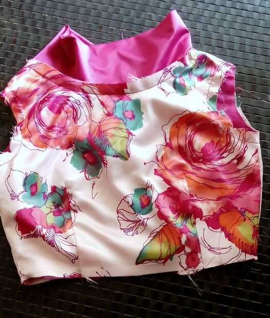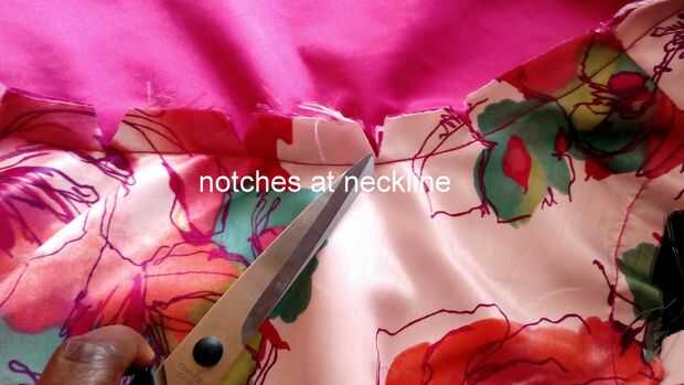 4. coser en el escote de la parte superior corta en la tela y el un corte forro mal lados juntos