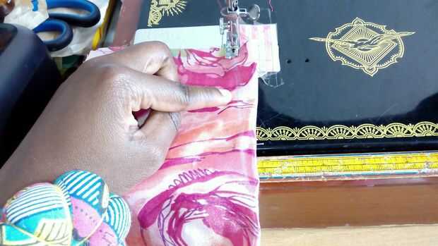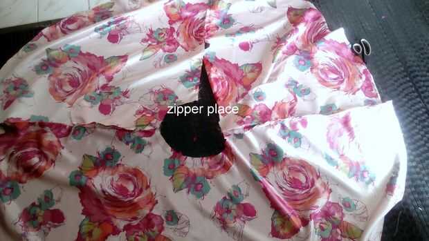 9. perno de la blusa con la falda y coser para que tu vestido. Ahora, coloque la cremallera en la parte posterior