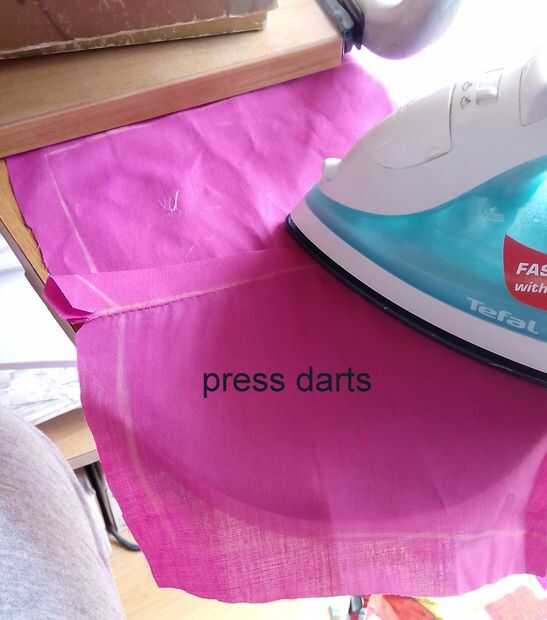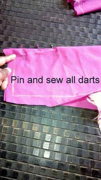 2. coser los dardos: para el frente y parte posterior de la parte superior y lo mismo con la tela del forro
