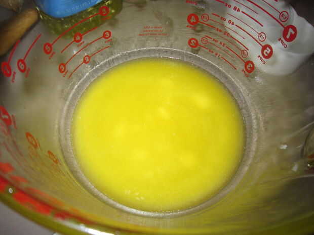 -Derretir la margarina en recipiente de vidrio. En el microondas 1 minuto o hasta que se derritan completamente.