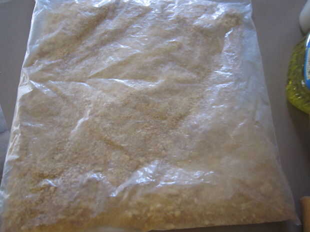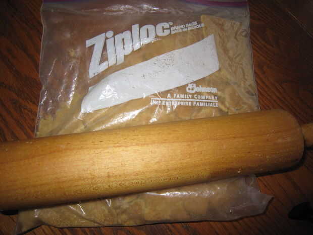 -Colocar galletas en bolsa ziplock grandes y aplastar con palote. (o con las manos)