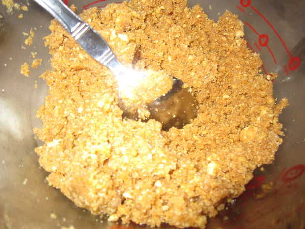 -Agregar 2 tazas galletas machacadas a la mantequilla derretida.