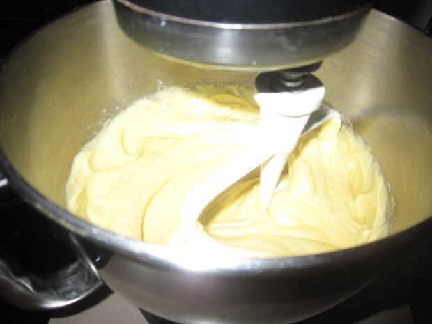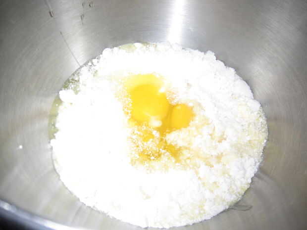 -Añadir mezcla de torta a los bolos -Añadir 1 taza de agua -Añadir 1/4 taza de aceite -Agregar 3 huevos -Mezclar en batidora (yo uso la Kitchenaid pero hará cualquier mezclador electrónico). -mezcla 1 minuto a velocidad baja -mezcla 2 minutos a velocidad media