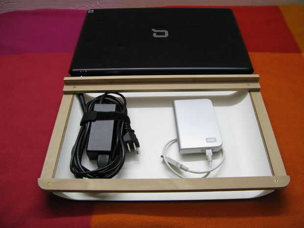 Puede servir incluso como llevar la bandeja para el adaptador de red y un disco duro externo USB.