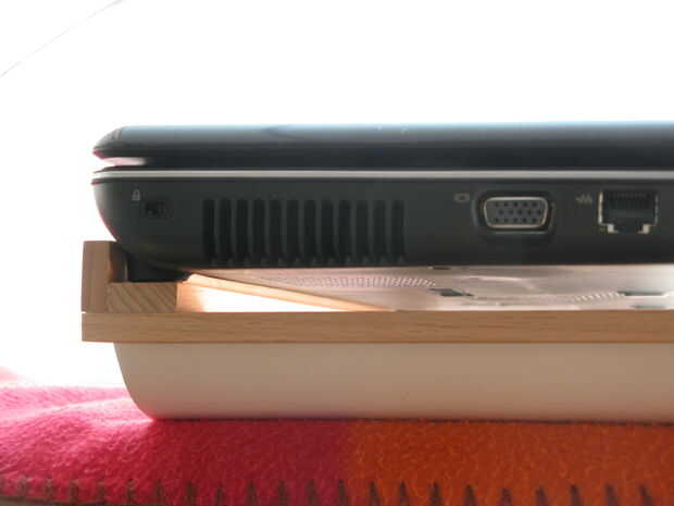 como ponen a menudo en la cama y todavía les gusta trabajar con mi laptop, me di cuenta de que mi notebook de reemplazo de escritorio de HP no está construido para que descanse sobre las piernas superiores. También no le gusta permanecer en las super