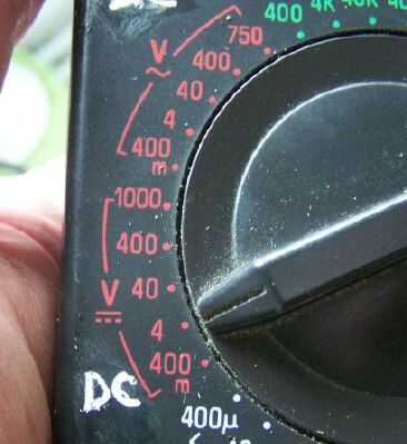 (Este medidor tiene un control deslizante de encendido/apagado del interruptor. Muchos metros se enciende cuando el selector redondo se mueve a cualquier rango de ajuste. Está en la parte superior del selector de esas unidades. Metros tienen las baterías internas. Apague el medidor al terminar para guardar las pilas. Muchos metros apague se automtically después de algunos minutos.)