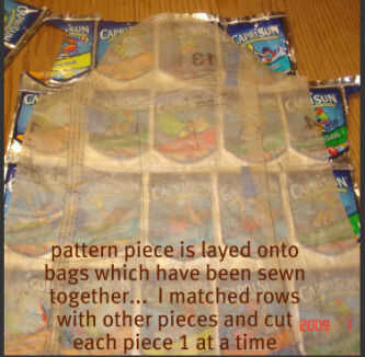 Después de tener suficiente cosidas a una pieza de patrón en las bolsas, cortar el patrón hasta que todas las piezas son cortadas y listo para coser. no se olvide de emparejar sus "rayas" para que las filas son nivel completamente alrededor de la chaqueta.