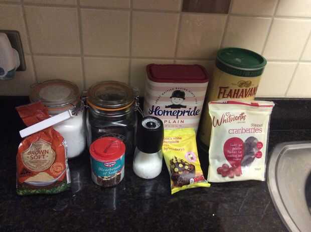 1/2 taza nueces (opción libre de tuerca: 1/2 taza de avena arrollada, arroz crujiente cereal o granola)