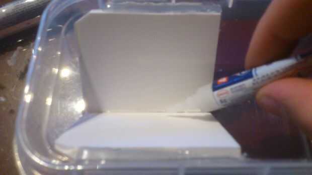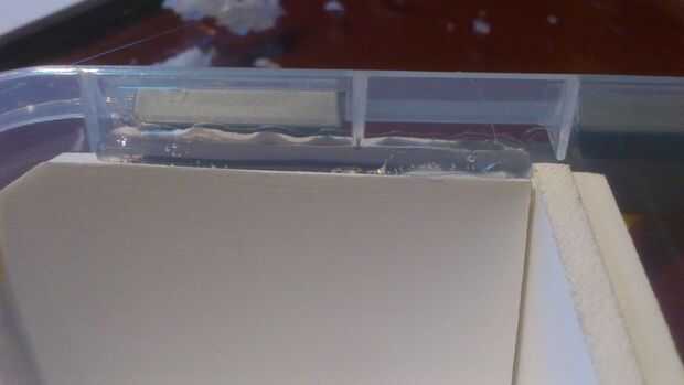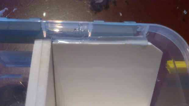 Este paso muestra ho para pegar las láminas de plástico en la caja de