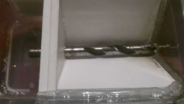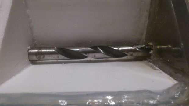 Taladre un orificio justo por encima de forma de V con la broca que se incrustará en el cuadro de
