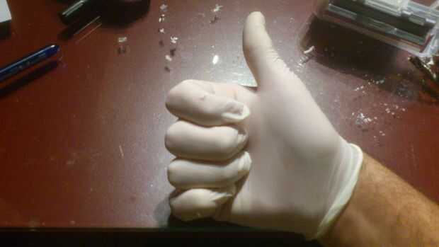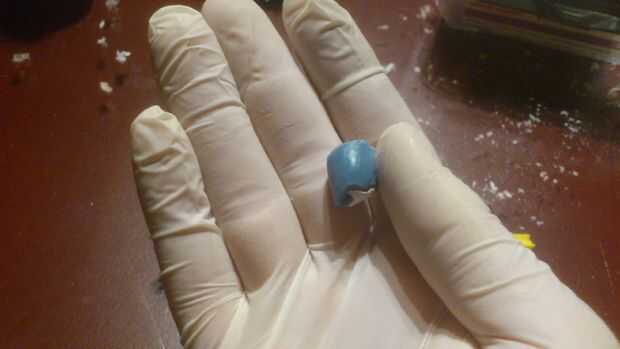 puesto que es guantes y empezar a amasar el palillo del pegamento (utiliza una porción de la mitad)