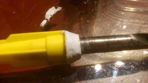 a continuación poner el resto de la cola alrededor de la broca y la tapa