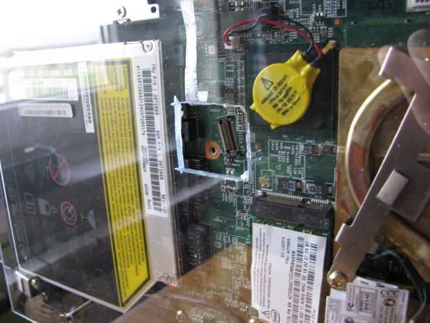 Un problema que tengo es que el AIO puede ser alimentado sólo por interruptor de encendido en el teclado y yo no puedo resoldar en algún otro. Esa es la razón por la que tuve que cortar el plexiglás en medio de la plástica posterior.