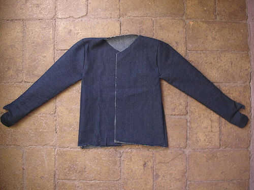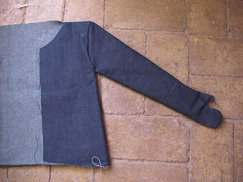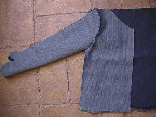 3. Coser la curva de la axila de la pieza del brazo que está en la parte superior a la pieza del pecho y el que está por debajo de la pieza trasera.