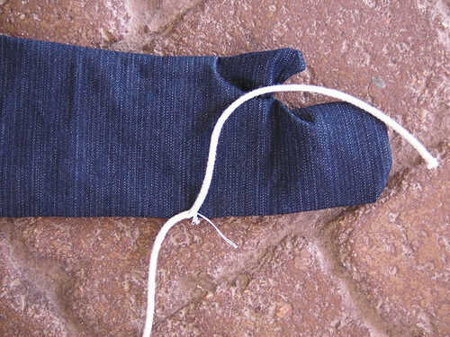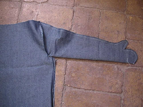 11. Doblar un poco de la cuerda por la mitad y coser ese medio punto a la marca que acaba de hacer. Esto puede estar vinculado, cuando la chaqueta es en el niño, para mantener la mano resbale fuera de la manopla.