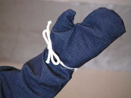 3. Una vez que el otro brazo y la cabeza está en su lugar, puede la chaqueta con cremallera y ata la otra cuerda de la muñeca.