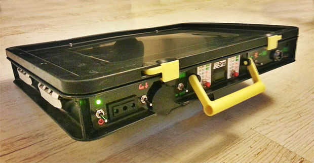 Cuando busco en la web, encontré aluminio "maletas" que pueden proporcionar una salida de 220V AC. Generalmente son muy pesados debido a las baterías de plomo dentro y no es adecuadas llevar fácilmente.