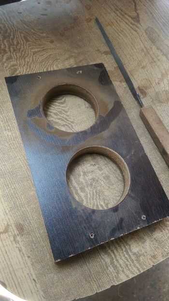 En ambos las caras laterales, cortar dos piezas circulares ya sea manualmente o con la ayuda de un carpintero que carecen de las herramientas adecuadas. Los grandes agujeros circulares son para colocar altavoces.