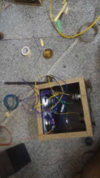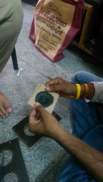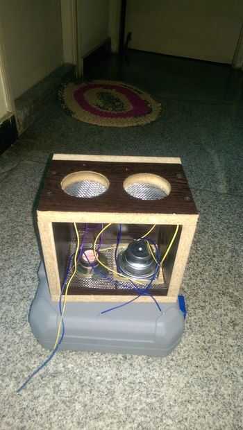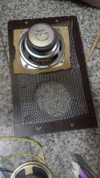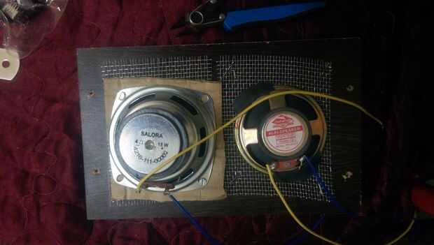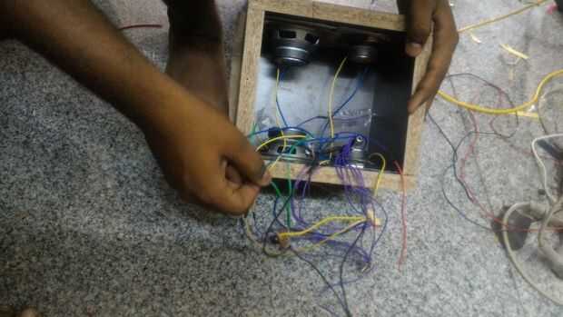 La malla metálica debe estar aislada de la parte metálica del altavoz. Logré este aislamiento utilizando una cartulina cortada adecuadamente, entonces utilicé mSeal, el adhesivo epoxy fuerte altavoz a los tableros del palillo. Para soldar los terminales del extremo de los altavoces usando multi cables trenzados se hicieron. Entonces todas las caras de la caja excepto la parte de atrás fueron atornilladas entre sí como se muestra en la imagen.
