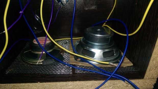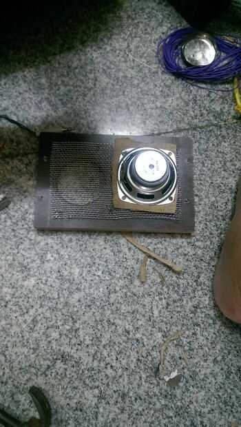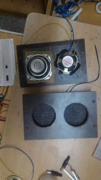 En todos los cuatro agujeros grandes en el paso 3, colocar una malla metálica desde el interior de la cara. Esto se hace para proteger la membrana de los altavoces del contacto humano, ya que son muy sensibles. Si ellos se deteriora, la claridad del sonido se reduce considerablemente.