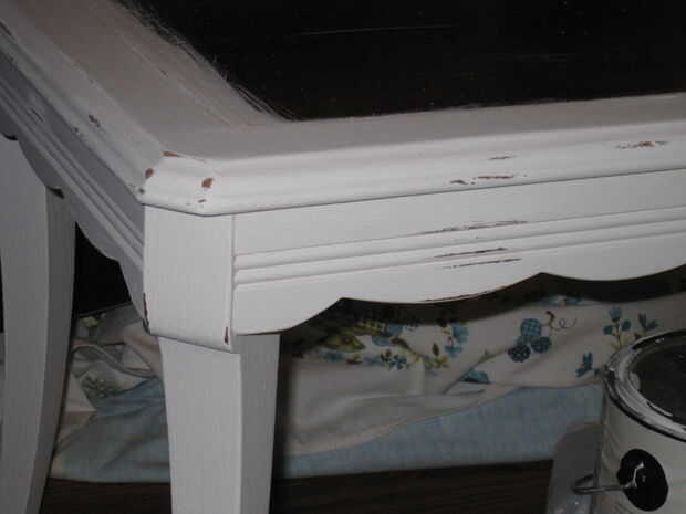 3. angustia los bordes de la mesa con papel de lija, no sobre cualquier superficie, pero en las esquinas y aquí y allá para que se vea más natural y resistido.