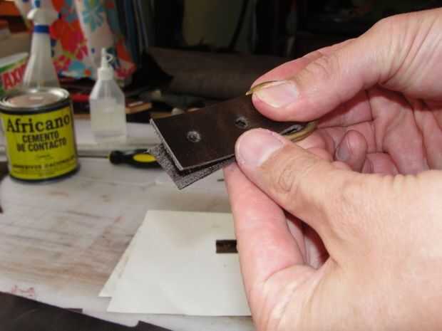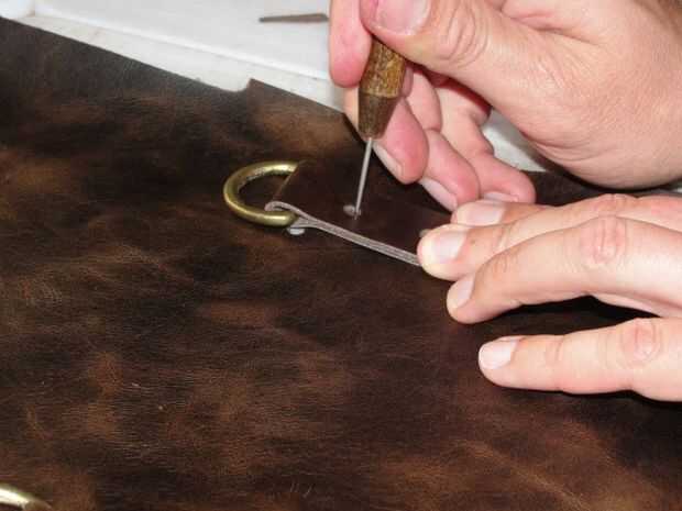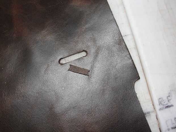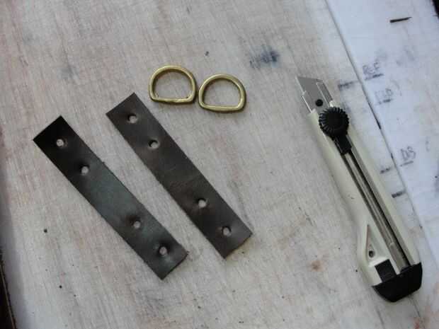 Perforar dos agujeros de la anchura de las correas y luego conecte los agujeros que hace la ranura.