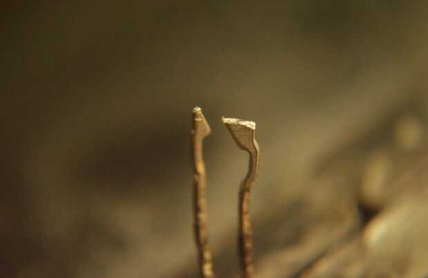 - Ánodo y el cátodo del LED extraído de la cáscara plástica.