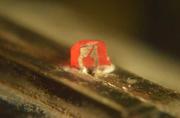 - Closeup de ánodo y el cátodo del LED. (LED en rodajas por la mitad).