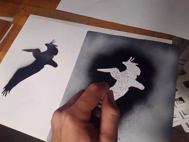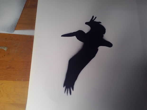 Selección de la imagen es importante. Por supuesto usted puede sentirse libre para dibujar algo, pero me centraré en el trabajo de fotografías y proyección de imagen de computadora. Mientras podemos usar software para manipular una imagen, es más fácil comenzar con algo parecido a lo que usted quiere su plantilla parece. En este caso un pelícano vuela con el sol detrás de él haciéndole muy oscuro contra un cielo brillante. Esto me da mucho contraste para trabajar con.