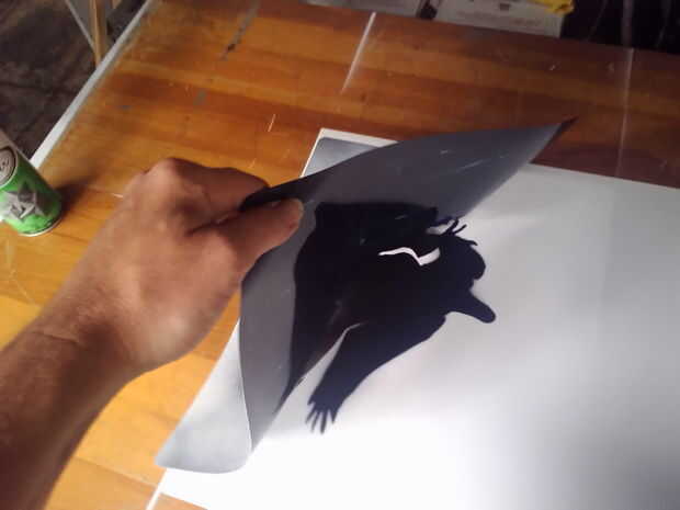 Otra técnica es imprimir la imagen sobre cartulina y recortar con un cuchillo de la manía. Esta es una manera barata y rápida para obtener una plantilla pero el papel no dura tanto como la película. También puede imprimir la imagen en hojas de transparencia del retroproyector. Este material es un poco mejor y pintura acumulada sale fácilmente, pero es una opción costosa y está limitado a los tamaños estándar de impresora de escritorio. El precio de una caja de transparencias cubrirá un proyector de baja resolución usada. Si usted tiene un viejo retroproyector que la película puede utilizarse para proyectar su imagen en materiales de tamaño más grandes, pero alinear la imagen a mano es casi imposible si está utilizando varios colores. Lo hice durante años y no lo echo en todo. Absolutamente amo mi proyector digital y no volver a herramientas de hombre de las cavernas nunca más.