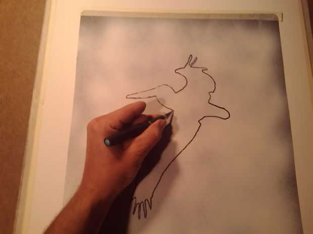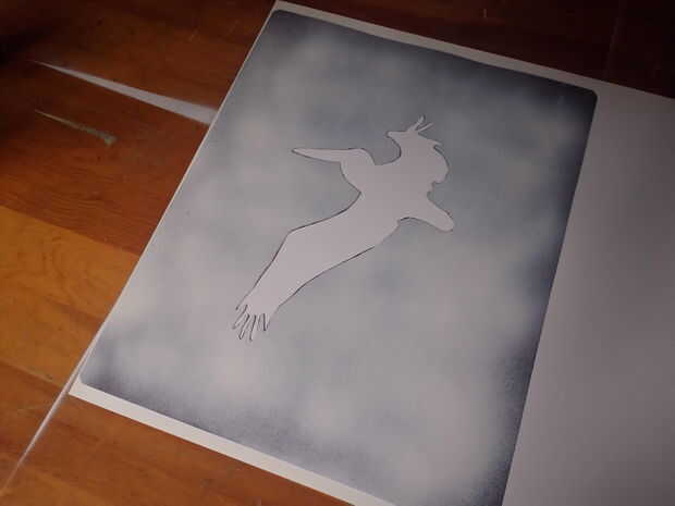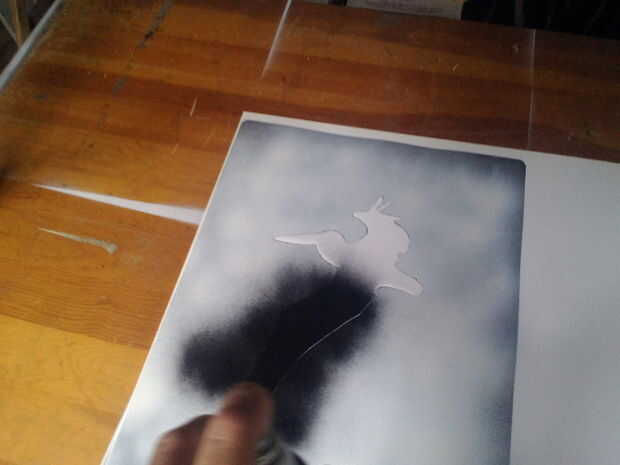 Ahora que la imagen está lista podemos cortar la plantilla. Hay muchas opciones disponibles, use lo que adapta a sus necesidades y recursos mejor. Lo que hago es que una película de rayos x con una rápida mano de imprimación de spray Kilz de la pintura. Después de esto se seque I cinta la plantilla a la pared y utilizar un proyector digital barato para proyectar la imagen sobre la película preparada. Yo uso un rotulador para trazar la plantilla y recortar con una cuchilla Xacto. Un proyector viene muy útil más adelante cuando hacemos plantillas multicoloras y nos permite hacer las plantillas grandes.