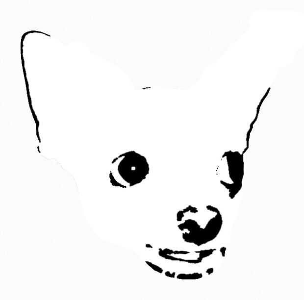 Con las plantillas de fotos basado en selección de la imagen es vital. Desea seleccionar una imagen con mucho contraste y un buen equilibrio de áreas claras y oscuras. También, considerar la composición de la imagen final de la plantilla. Veamos un ejemplo. Hasta arriba encontrarás una foto de mi perro, mono. Me tomó esta instantánea y recortado todo pero su cara usando la herramienta lasso. Esto crea una estética forma de triángulo. (Ha el gran secreto-tiro implícita triángulos en su arte y se aman. Shhh.) Al hacer retratos faciales, que tratar de encontrar una imagen de la fuente que tiene una línea definida entre la cara y el cuello. En este caso la barbilla del perro y línea de la mandíbula crean una ventaja natural para el fondo de la imagen. Simplemente corte la imagen y dejando un tocón de cuello hacen un retrato como una cabeza cercenada. Que sus imágenes un aspecto natural y evitar tocones de cuello.