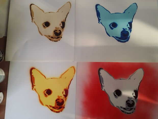 Trate de incorporar varios elementos en la misma plantilla con gamas de color diferente. Trate de un retrato de un amigo. Mezclan con combos de color extraño. Combinar esta técnica con la técnica de frisket en la siguiente sección para crear imágenes detalladas. Diviértete y explora!