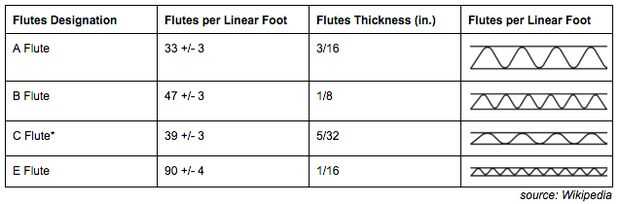 el número de "ondas" o flautas sobre un determinado pie lineal o meter el grueso de estas flautas (estos pueden variar ligeramente de un fabricante a otro)