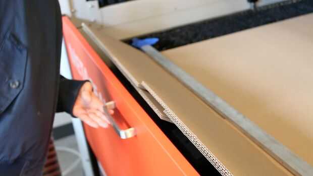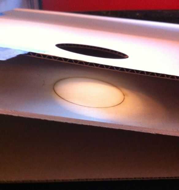 Usted puede utilizar por ejemplo un material más grueso (como anillado"madera contrachapada) se deslice entre las 2 capas de cartón. Hará un trabajo muy bien pero dependiendo de sus diseños su corte podría no ser tan limpio como el láser consigue más cercano de los bordes, porque la capa superior se dobla ligeramente.