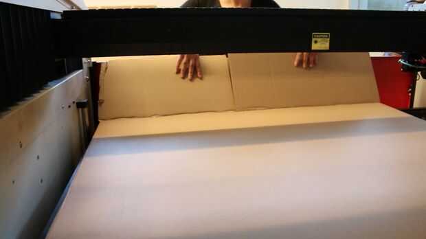 De todas las herramientas disponibles en el Pier9, el que encajaría mejor nuestras necesidades con respecto a la cartulina era el cortador del laser Metabeam 400W. Con su lado de la cama de 4' x 4', casi a la perfección puede alojar nuestras cajas.
