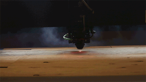 Estas piezas también se han reducido en Metabeam del muelle 9. El pegamento usado dentro de la madera contrachapada produjo algunas llamas interesantes... pero ajustando la potencia y velocidad, hemos sido capaces de cortar a través del material sin ninguna consecuencia dramática. Sólo un montón de humo.