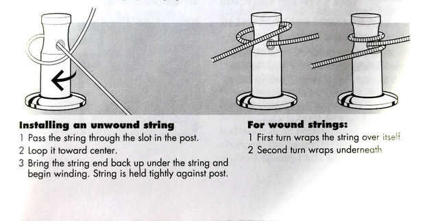 - Como instalar cada cuerda y sintonizarla, volver a los previamente instalados y volver a afinarlos