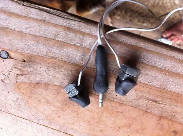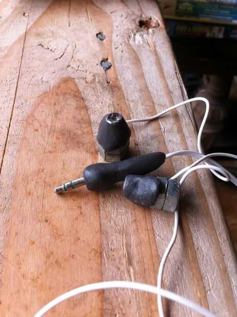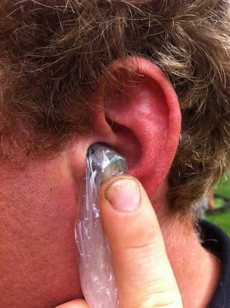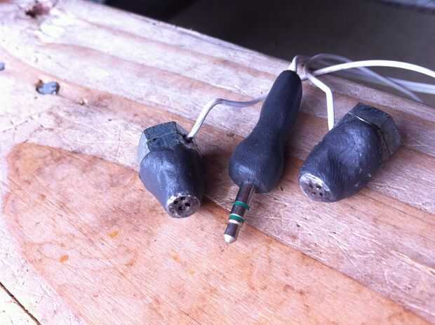 Paso 5. Los sellos del oído personalizado de dos bolitas iguales de Sugru del molde. Como alternativa, puede utilizar las almohadillas de silicona que los audífonos originales, si los tienes, que puede ser más cómodo que el sugru unos. Molde de mano alrededor de la punta del perno, asegurándose de que no conecte los 4 agujeros de los sonidos en el extremo del perno. Punta de auricular con Sugru en él en una pieza de abrigo de saran, o una bolsa de sándwich y estire el plástico alrededor de punta de tornillo y Sugru. El abrigo de saran es allí la Sugru no se pega a su conducto auditivo. Empuje suavemente en su oído, recto, y poco a poco, así no excesivamente puré de la sugru. Mueva alrededor con movimientos muy pequeños en el oído, por lo que es cómodo. Sáquelo lentamente por lo que no cambia desde su molde de oído. Quitar el plástico poco a poco para no tirar a Sugru. PRECAUCIÓN!!! Ten cuidado. USE EL SENTIDO COMÚN. NO PEGAN NADA DEMASIADO PROFUNDO EN EL OÍDO. SER SUAVE. PRUEBA LOS BORDES FILO ANTES DE EMPUJAR EN EL OÍDO.
