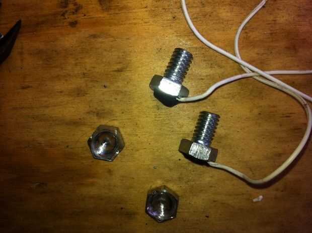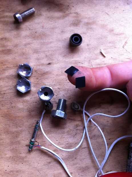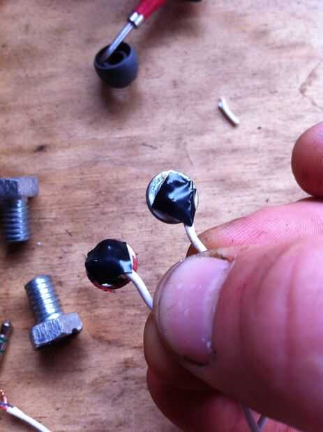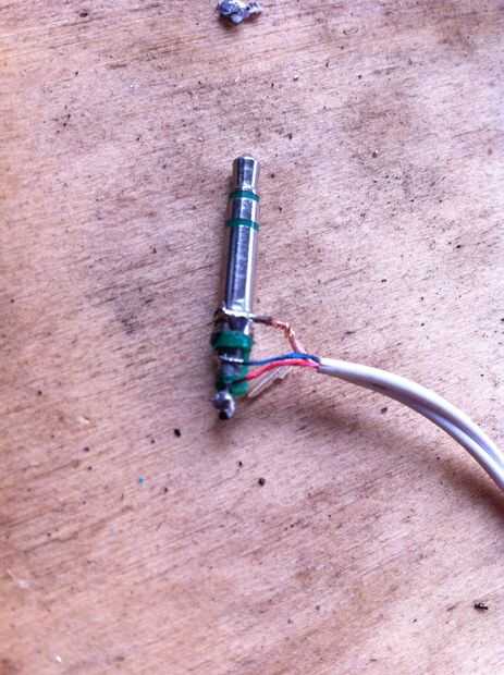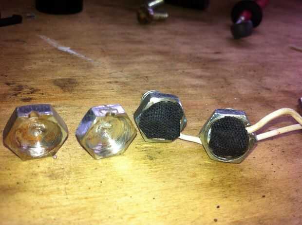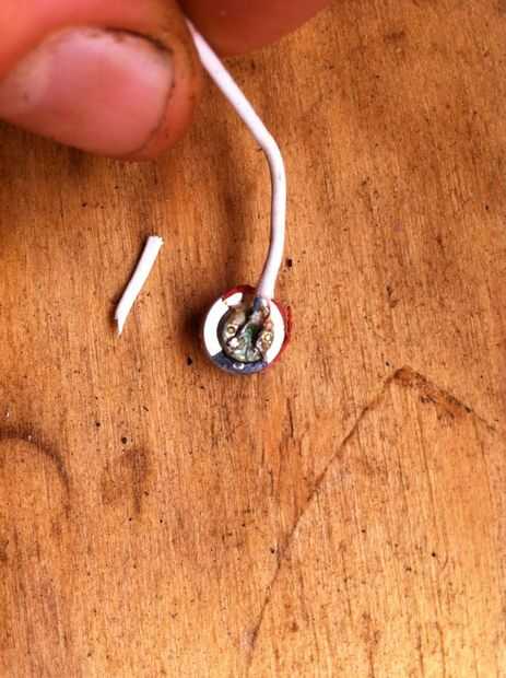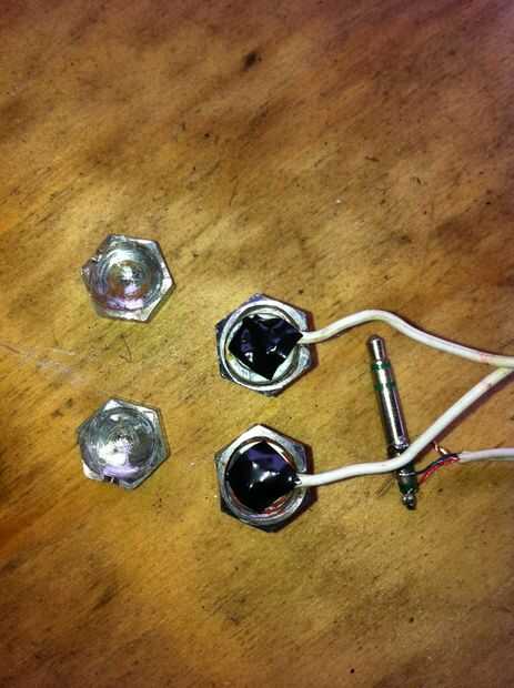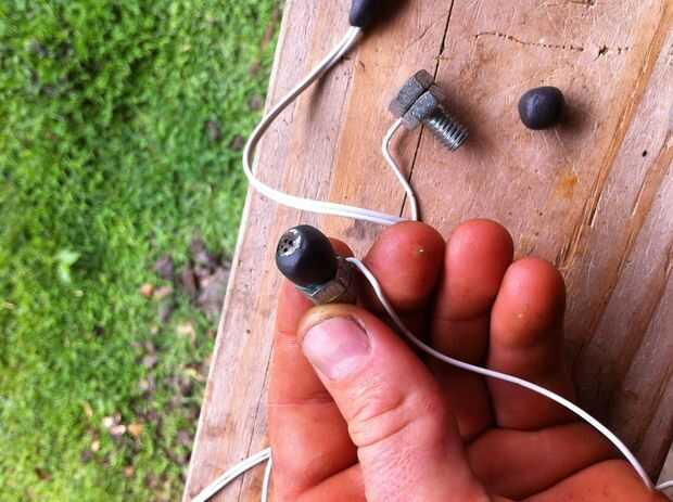 Paso 3. Gorila Super cola o pegamento regular, se usa para adherir las dos mitades de los pernos de earbud juntos. Poner altavoces en el perno del tubo sonoro, con el diafragma hacia el camino correcto y poner la cabeza del perno de tapa a tapa el altavoz. Alinee los orificios de paso de cables y centro completamente. Puesto el pegamento en una pequeña gota, como en la foto. Mechas abajo en la ranura. Eso es todo lo que necesitas. Asegúrese de no utilizar demasiado pegamento, porque si entra en la cavidad del altavoz, va a destruir el elemento de altavoz. Abrazadera suavemente durante 6 horas secar completamente.