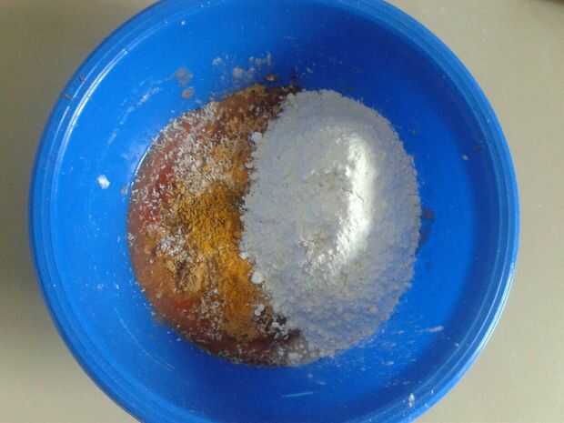 Ingredientes otra vez son los mismos que dada en aperitivos salados llano excepto añadir tomate. No hay agua es necesario para el amasado.