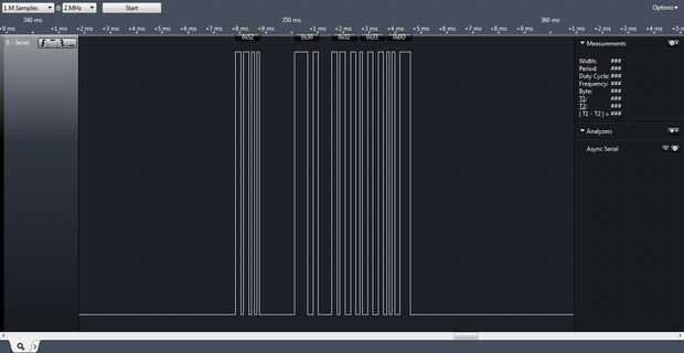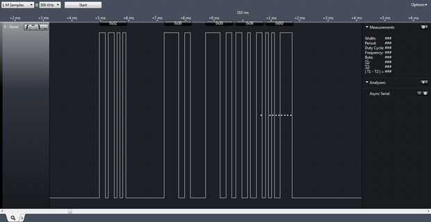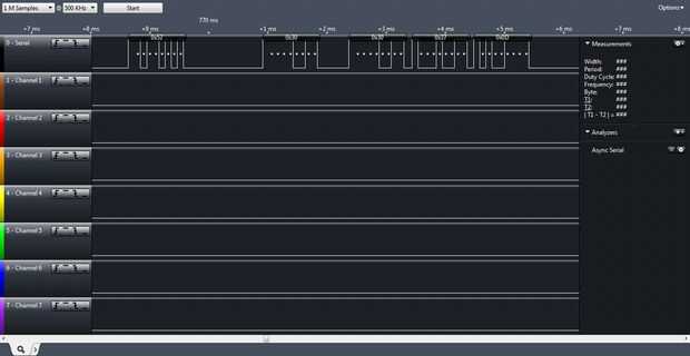 la imagen muestra analizador lógico y la salida en él