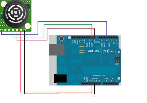 La salida es un capital de ASCII "R" que 0x52 igual, seguido de tres dígitos de caracteres ASCII que representan a la gama en pulgadas hasta un máximo de 255, seguido de un retorno (ASCII 13 o 0x0D)